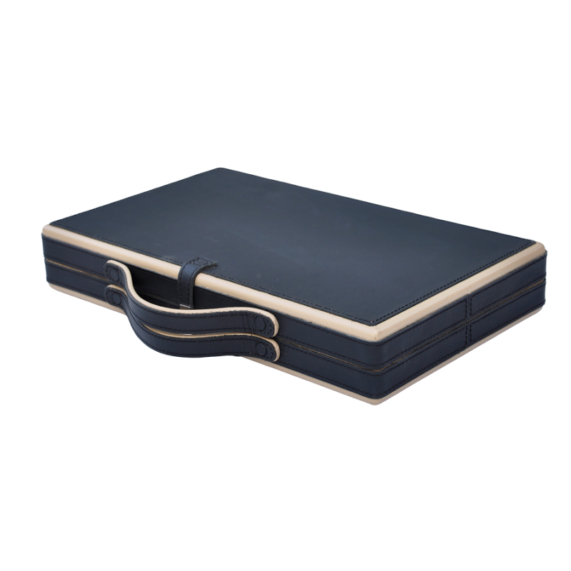 BLACK/BEIGE LEATHER BACKGAMMON