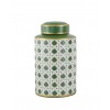 GREEN/WHITE CERAMIC CANNISTER 'CANE' D18X30H