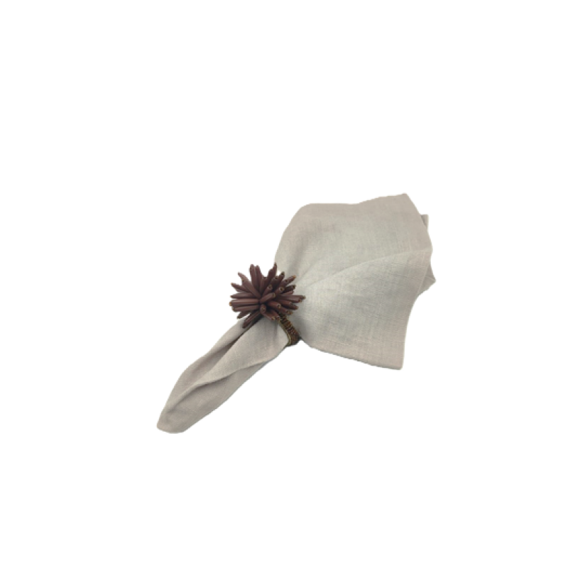 This vibrant brown-colored napkin ring features intricate, handcrafted beadwork that mimics the natural texture of sea coral. Its bold hue and rich, tactile finish add a perfect pop of coastal elegance to any tabletop.