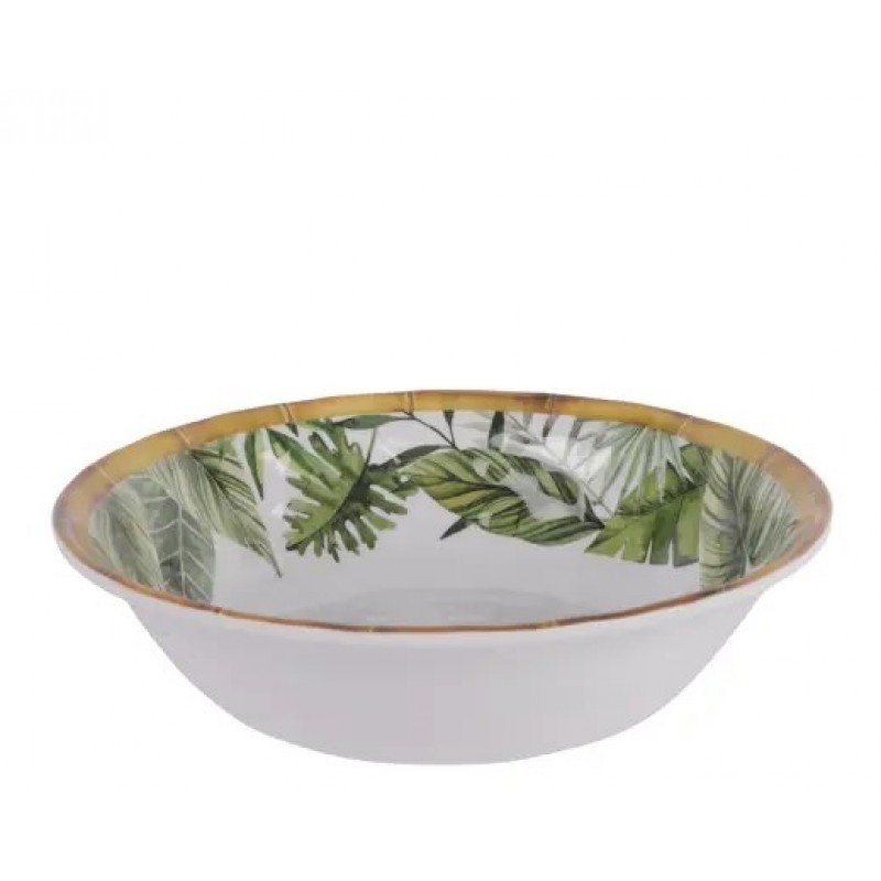 BOWL MELAMINE LEAF PATTERN BAMBOO RIM