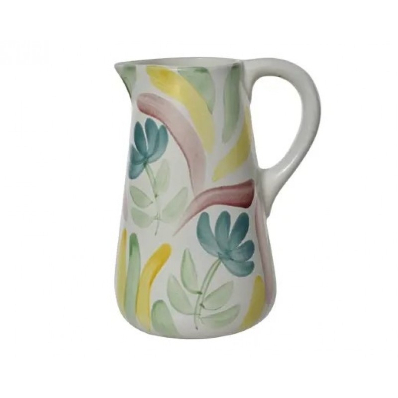 Brighten your table with this hand-painted ceramic pitcher, featuring whimsical floral motifs in soft pastel tones.