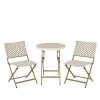 The Bellano Wicker Outdoor Set includes a round folding table and two matching chairs with a woven wicker-style design and slim metal frames. Its airy design and refined finish bring a clean, contemporary look with a subtle classic touch.