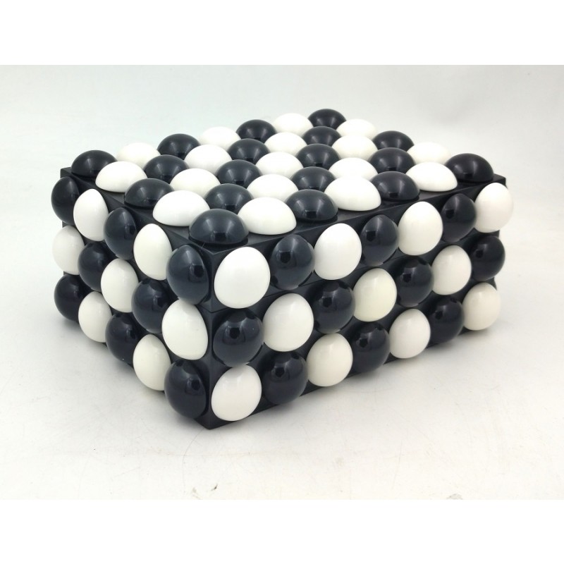 Black wooden box featuring a checkered pattern of white and black half-sphere accents.