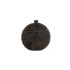 A sculptural ceramic bowl in a deep, dark glaze with a softly spiked surface. Fully round in form, it features a matching lid and a seamless silhouette. Muted and abstract in character, it reads as both functional vessel and minimal sculptural object, with subtle texture that catches light quietly. Available in two sizes.