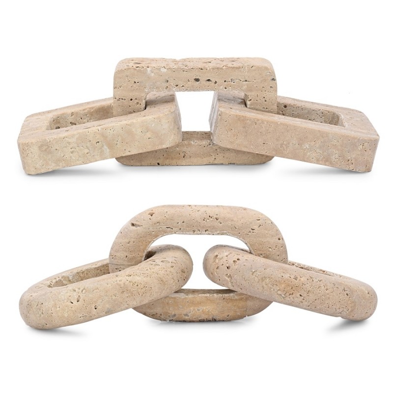 Decorative chain links in travertine marble, offered in two sets with rectangular and oval forms.