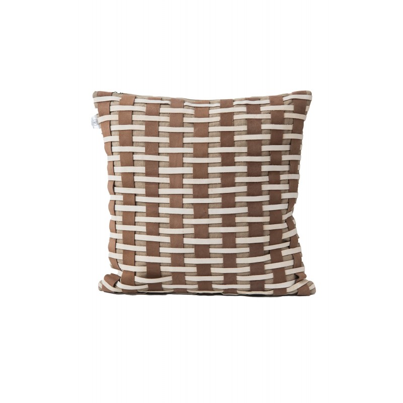 NU BUCK AND HAIRON LEATHER CUSHION WITH WEAVING
