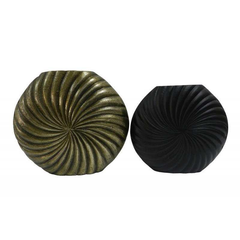 S/2 ASS.FLAT ROUND VASE ANT.GOLD/BLACK D24x22h/D26x28h