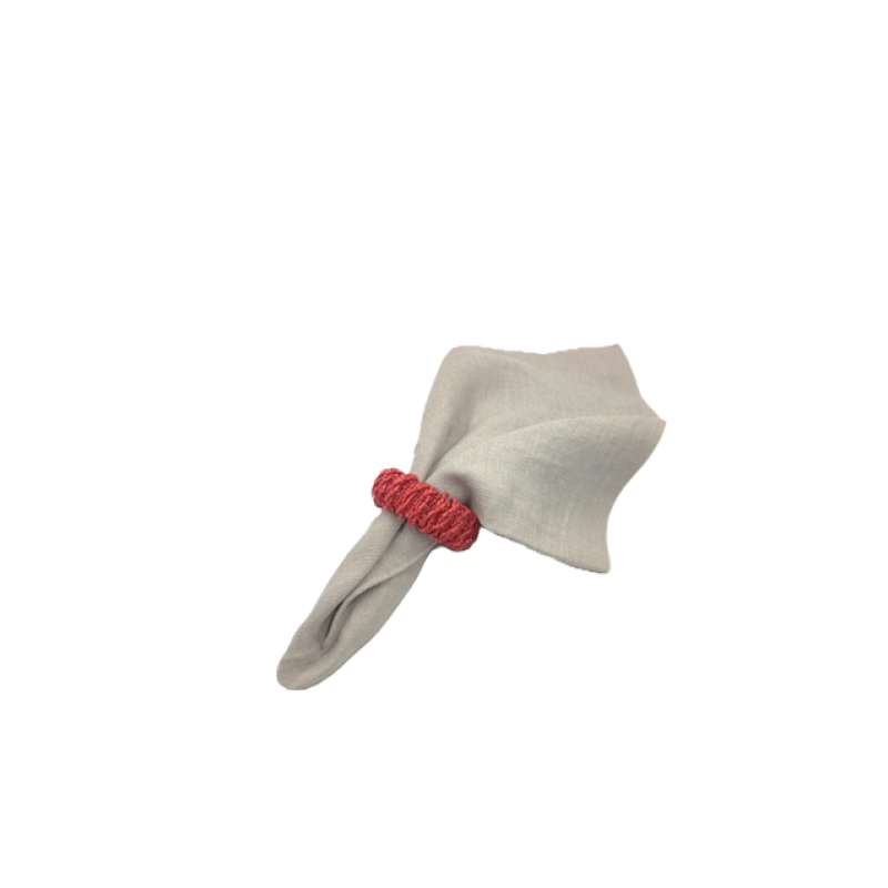 This vibrant coral-colored napkin ring features intricate, handcrafted beadwork that mimics the natural texture of sea coral. Its bold hue and rich, tactile finish add a perfect pop of coastal elegance to any tabletop.
