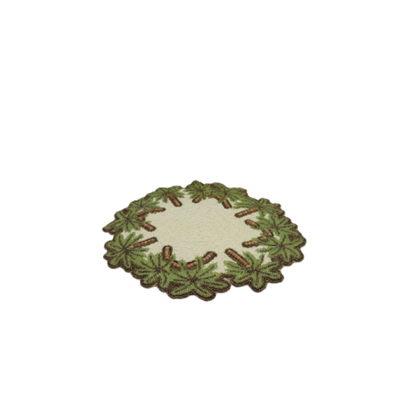 EMBROIDERED BEADED PLACEMENT GREEN CREAM
