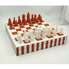 A white and orange chess set featuring a bold, modern color contrast that brings a fresh look to a classic game. Designed for both play and display, it adds a distinctive decorative touch to any table or interior space.