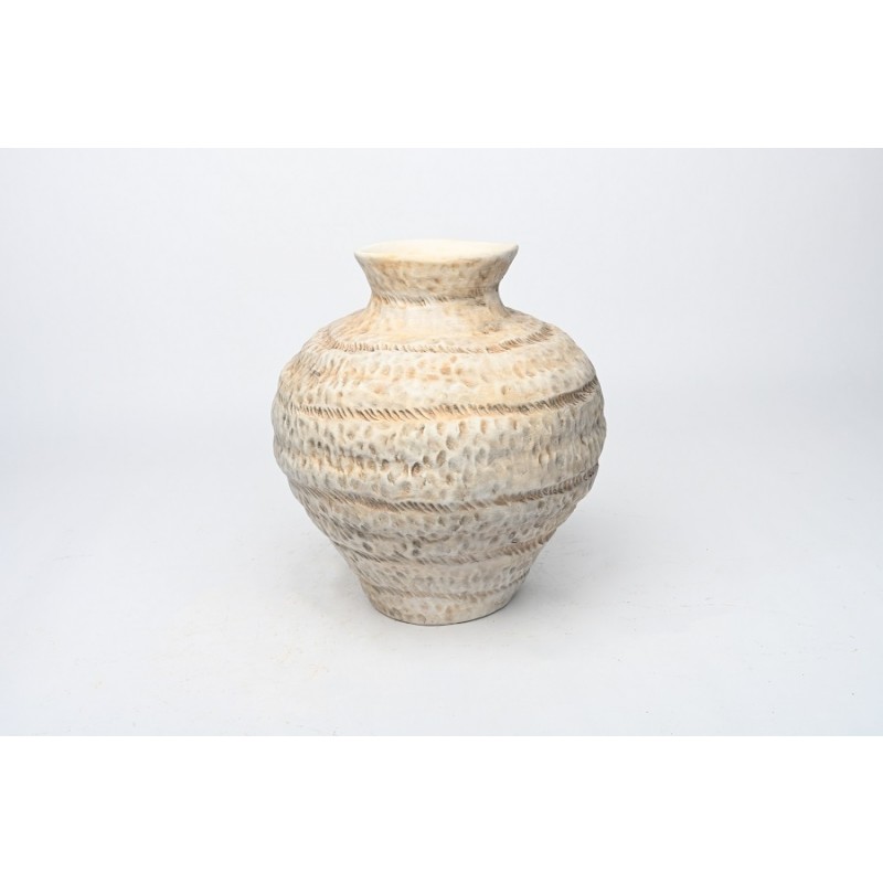Experience refined simplicity with this matte beige ceramic vase. Its subtly textured surface, marked by delicate indentations reminiscent of seashell forms, brings a natural, organic character to any interior. Ideal for minimalist spaces, it also works effortlessly as a versatile accent piece, blending seamlessly with existing décor. Perfect for showcasing fresh or dried arrangements, it offers a timeless and sculptural foundation for your botanical displays. Available in two sizes.